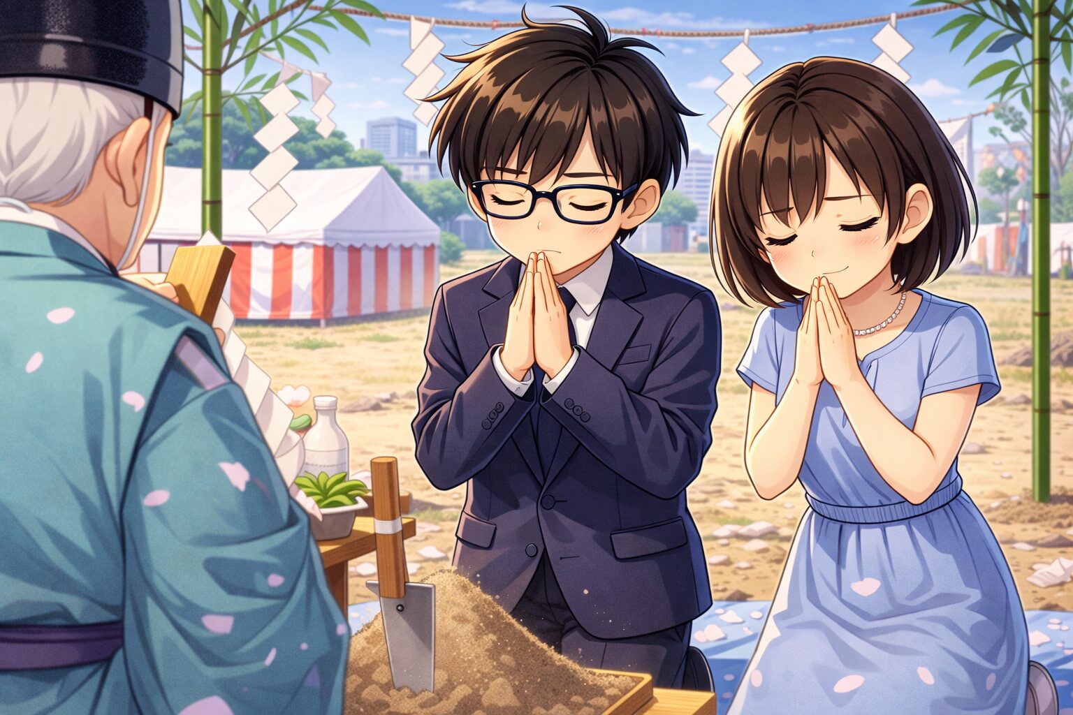 パイプテントを建ててお祓いみたいなことをやるのをテレビとかで見たことがあるけど、あれが地鎮祭なんだね