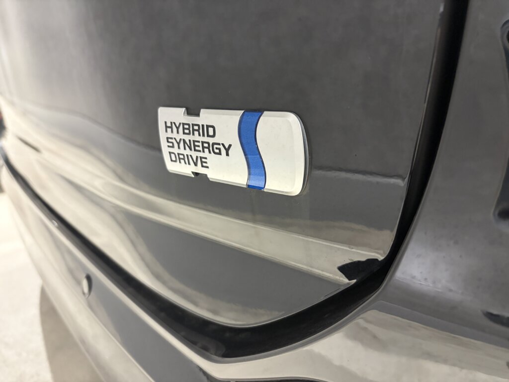 カタログで分かっていたことですが、今回のマイナーチェンジ…と言っていいかどうかも分かりませんが、特に見た目や装備面が大きく変わったワケではなく、外観で新旧分かる部分はハイブリッドであっても正面のトヨタマークの内側は青くならなくなったことと、後ろのハイブリッドバッジのデザインです。