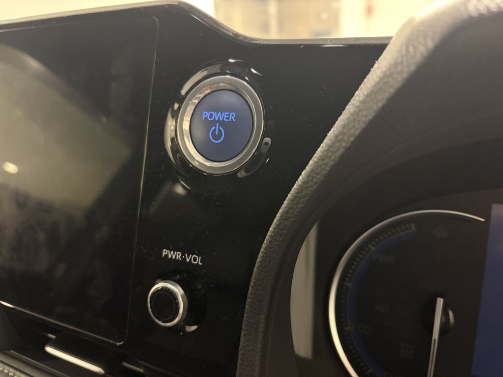 ハイブリッドの場合、エンジンスタートスイッチが青色から黒色へ変更となっていますが改良前にも発売後少し経った頃にランニングチェンジされたポイントです。スイッチ周りのリングもシルバーからブラックへ変更していますね。