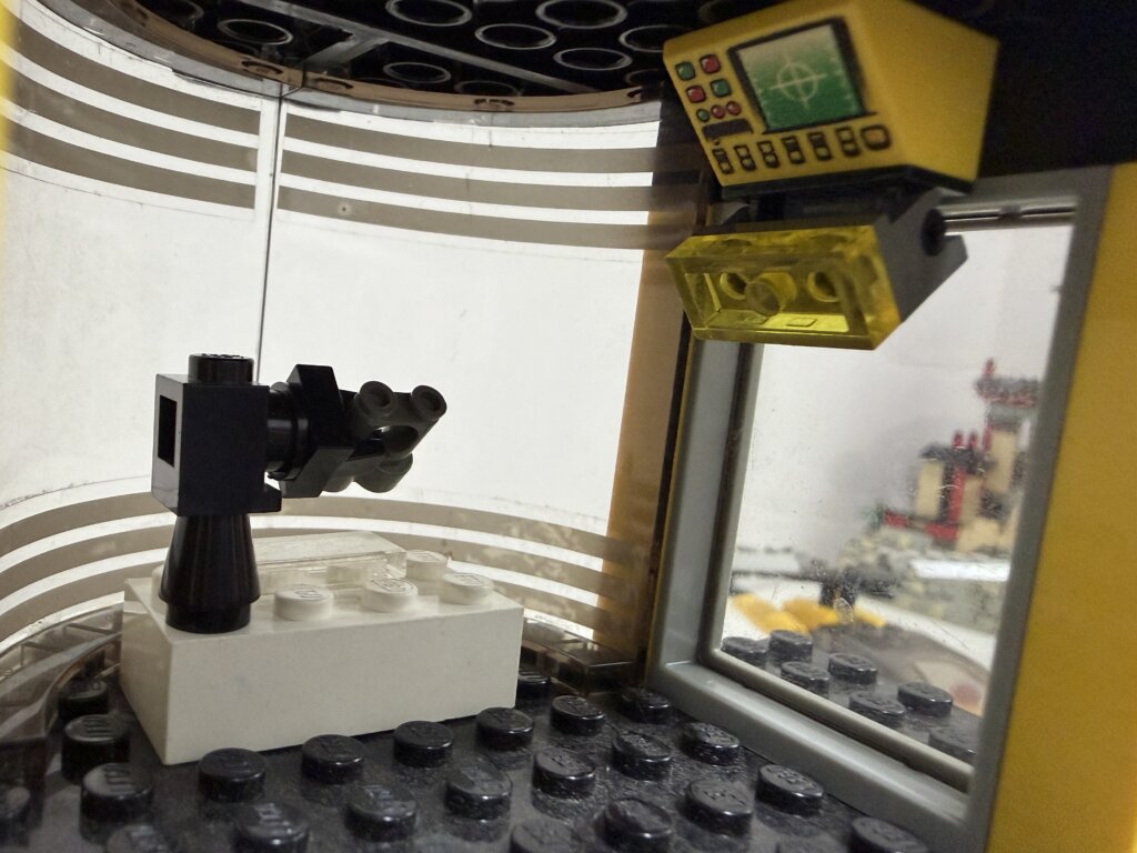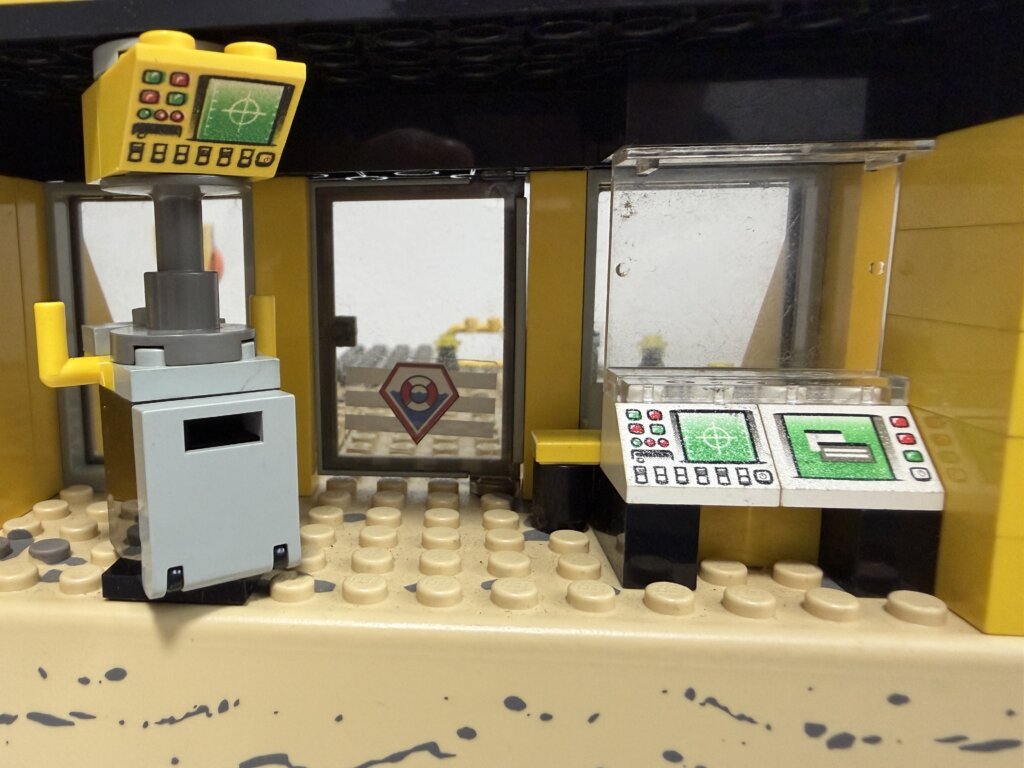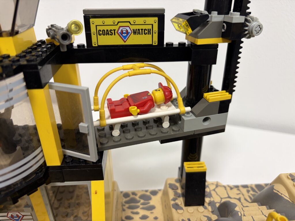 一階は用具入れと一体になったモニターと大きなディスプレイを備えた装置がありますね。本当はシールやギミック的なパーツがあったんですが紛失しています。これが海上の負傷者や不審物などの監視装置になっているのかもしれません。