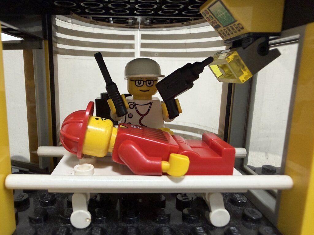 二階は後述しますが、恐らく作り的に医療室ではないかと思われます。レゴビルダーのアプリ内では一階が医療室と書かれていましたが、ちょっとムリがある気がします。