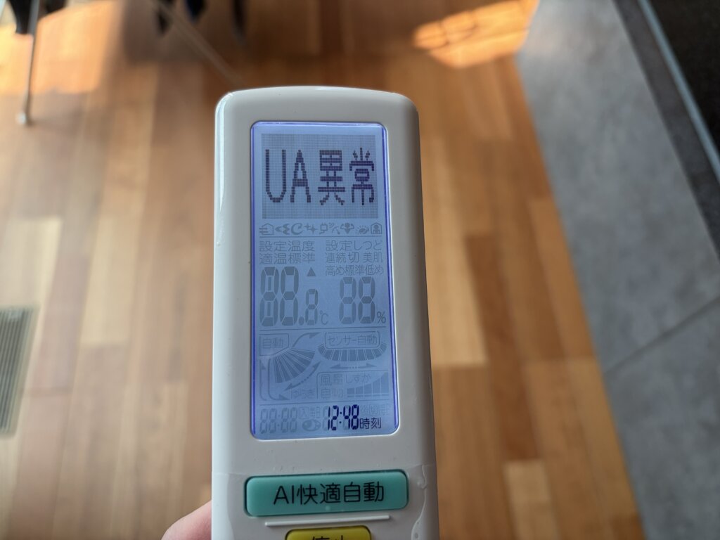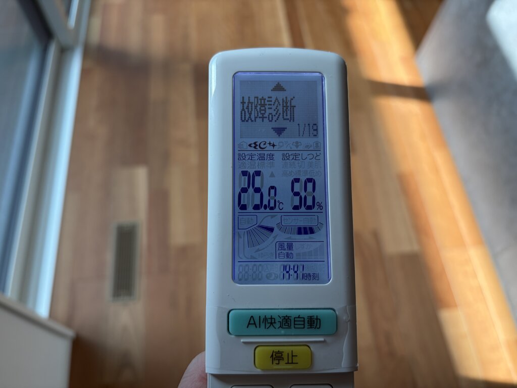 リモコンからエアコンの故障診断ができるようだったので、早速実施してみると…。
