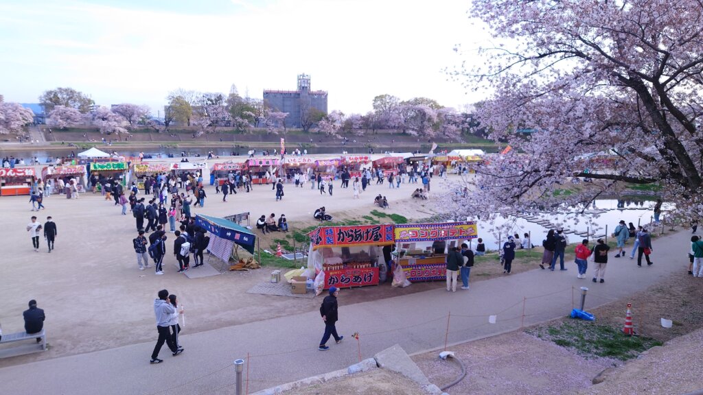 岡崎公園の桜まつり 過去ログ X Facebook はてブ LINE コピー 2022.04.062026.02.23人生で初めて花見というモノをしてきました。場所は岡崎公園。ラジオで満開と聞いたので。平日の夕方前くらいに行きましたが、すでにたくさんの人でした。この時期は花粉症なので花見の花の字に敏感で避けてきましたが、来てみたら悪くもないですね。時間が遅くなるにつれてだんだん人も多くなってきた印象です。学校や仕事終わりに来るのでしょうね。しかし、話にしか聞いていなかったですが岡崎公園の桜まつりの出店の数ときたら多くて驚きました。お花見の力はスゴイですね。